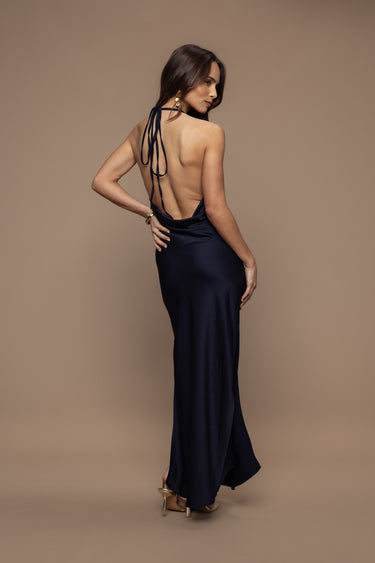 Das fließende, raffinierte und sinnliche Gala-Kleid ist der perfekte Verbündete für Frauen, die zeitlose und raffinierte Eleganz suchen. Mit seinem satinierten Stoff, dem Kragen und dem Wasserfallrücken verspricht es einen anmutigen Look, während es dank der Seitenschlitze Leichtigkeit und Bewegungsfreiheit bietet.