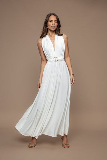 La robe Prestance incarne l'élégance et la polyvalence. Avec son haut multi-positions, cette pièce peut être nouée de multiples façons, vous permettant de créer une allure unique à chaque fois.
